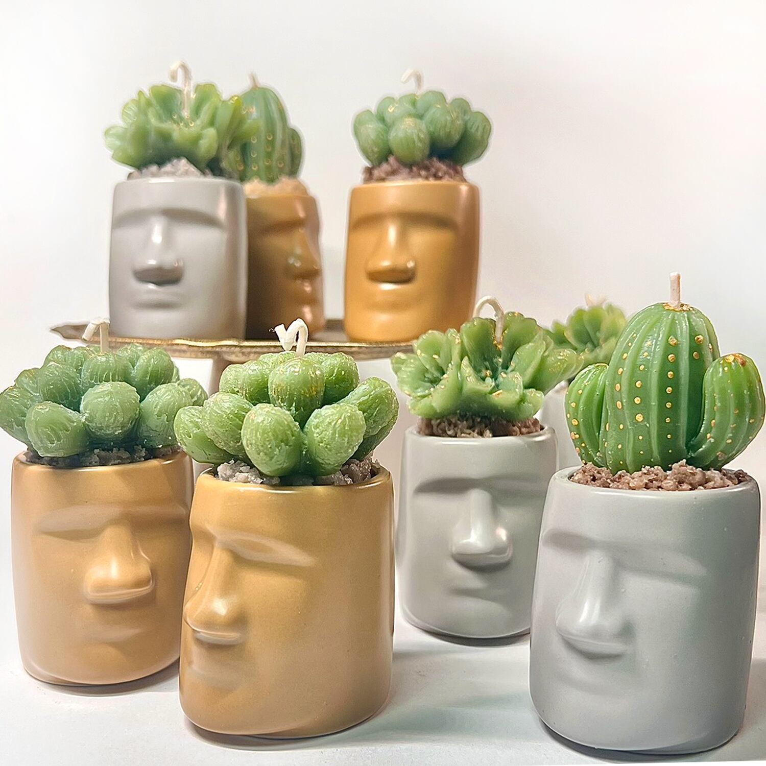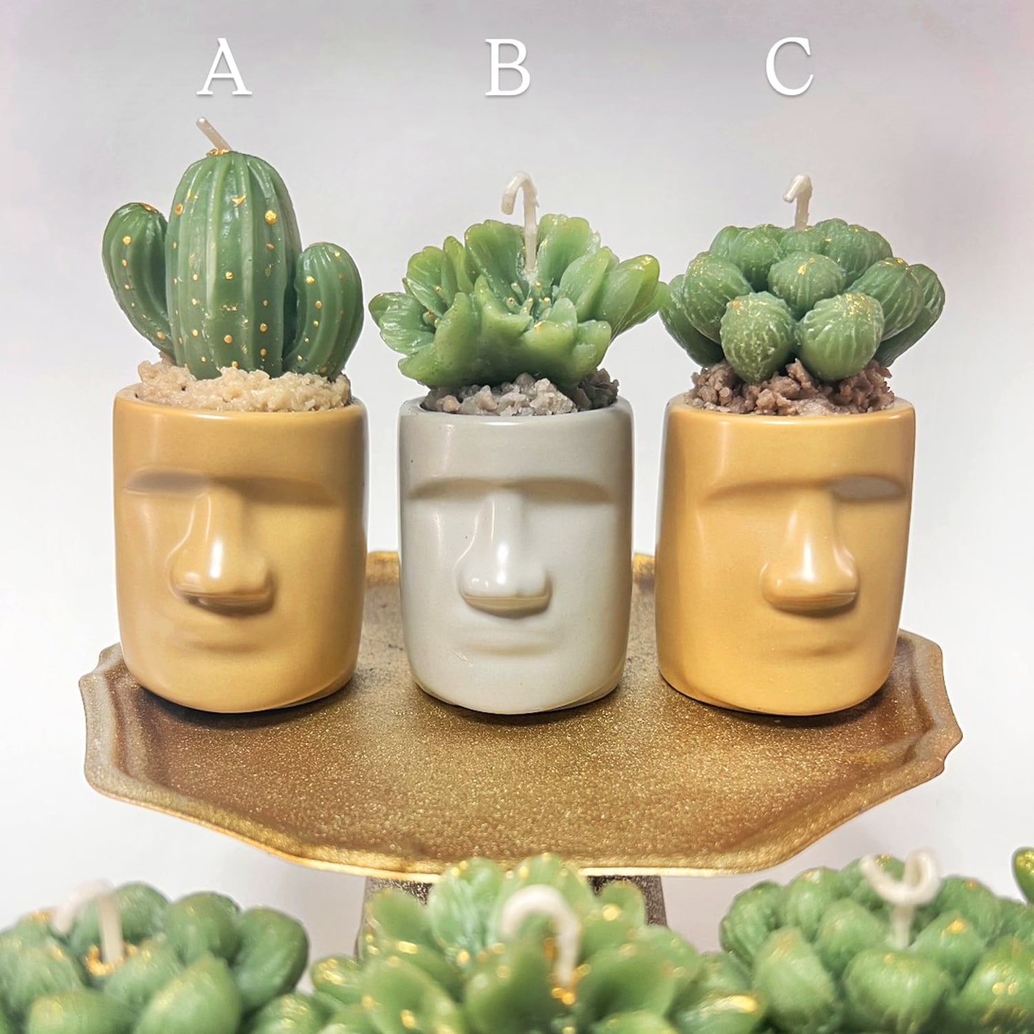 モアイ像の形をした鉢に入った多肉植物アロマキャンドル